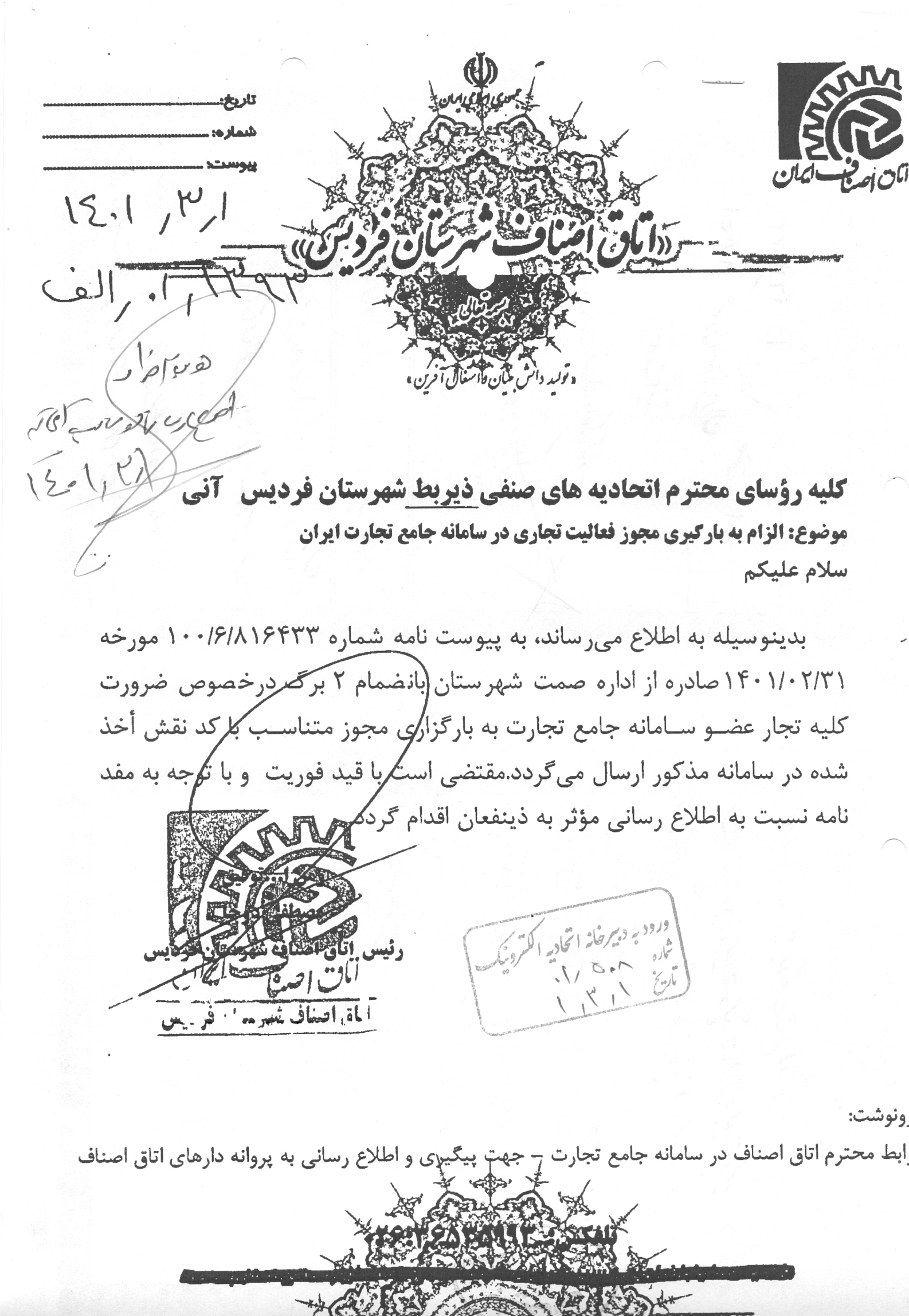 الزام به بارگیری مجوز فعالیت تجاری در سامانه جامع تجارت ایران