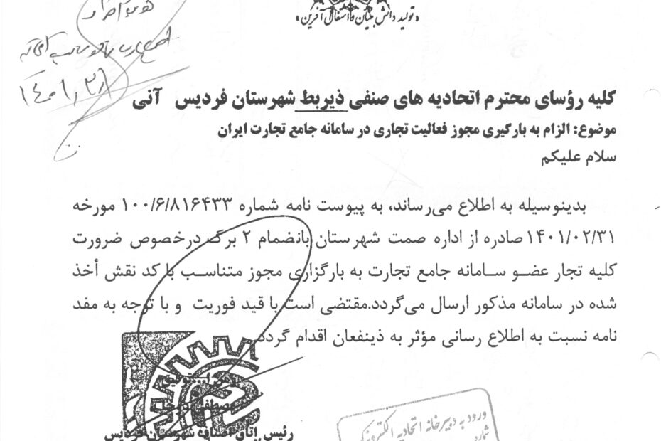 الزام به بارگیری مجوز فعالیت تجاری در سامانه جامع تجارت ایران